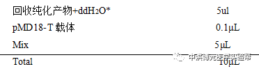 *注意:1)于16℃下连接8h,如有必要可以过夜连接;2)此处看回收纯化产物的浓度来调节ddH2O的用量,总量5μL